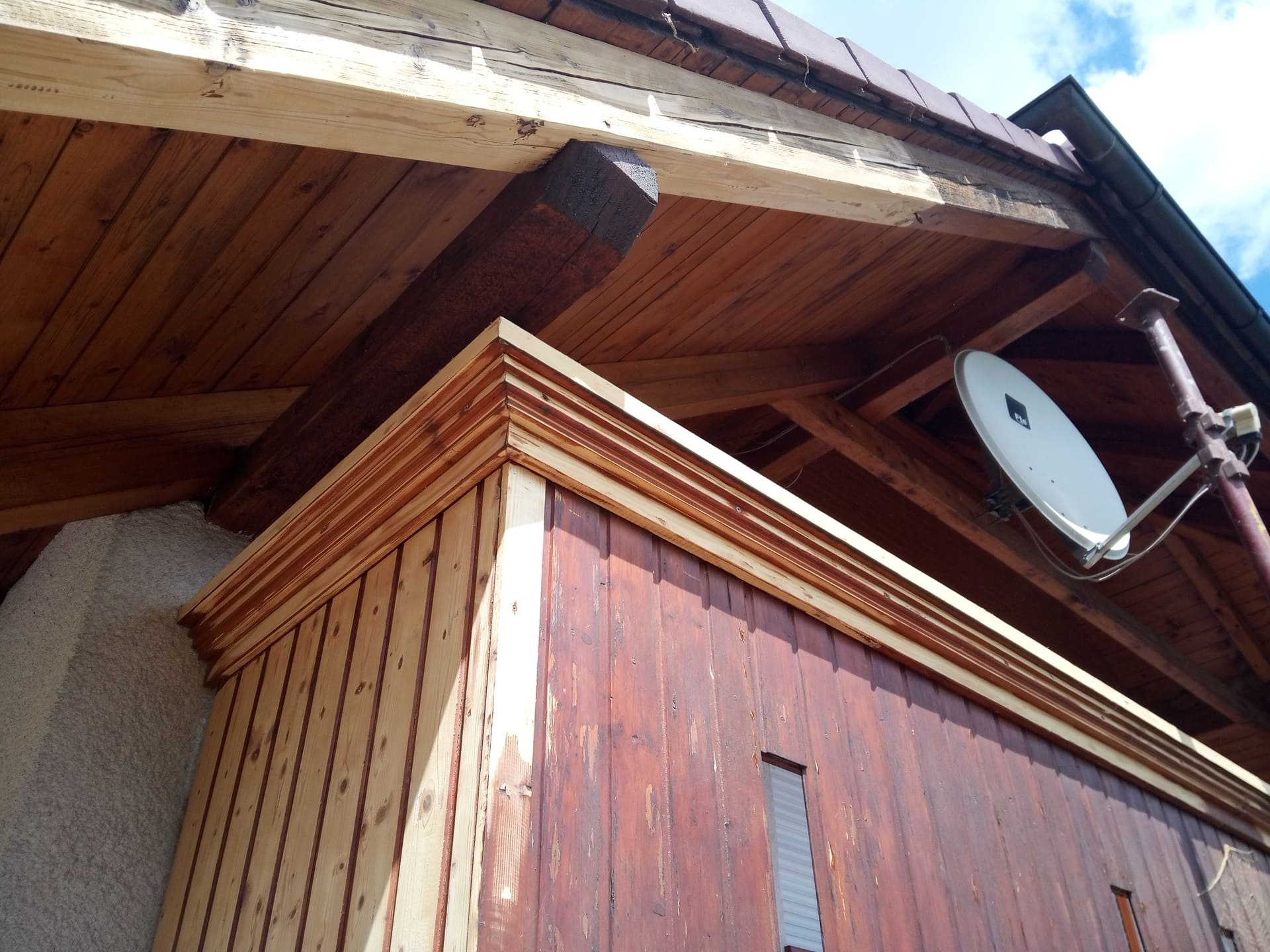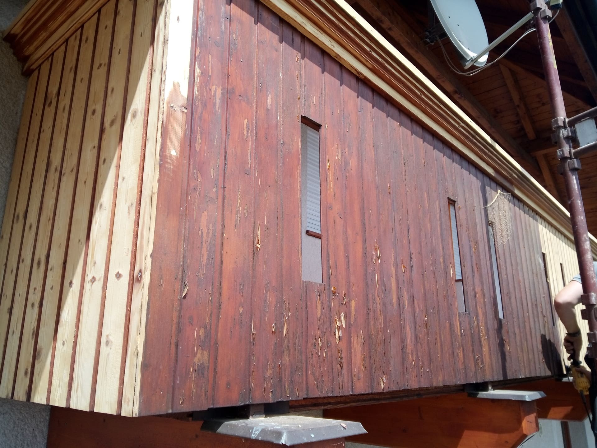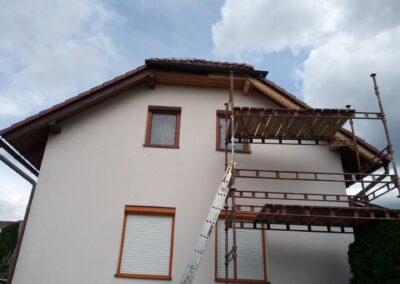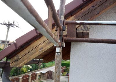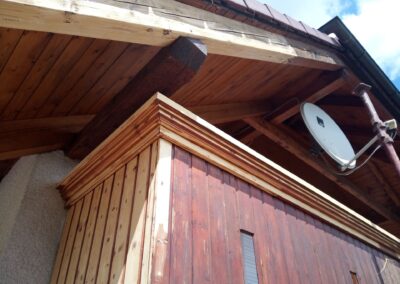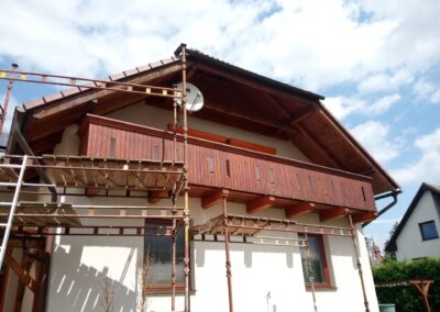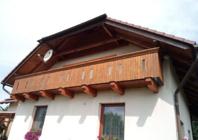 Očištění a nátěry venkovních krokví, kompletní obroušení dřevěného balkónu od původní loupající se barvy a provedení nových nátěrů