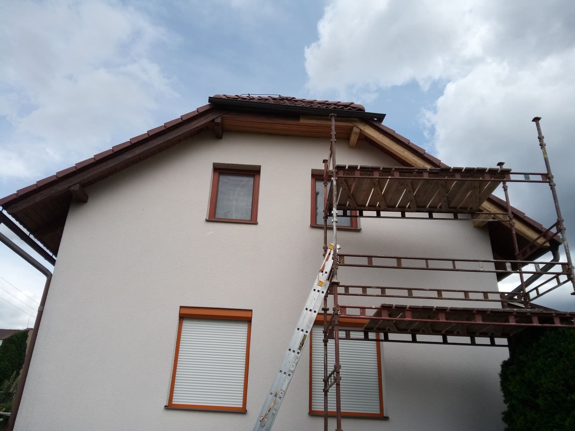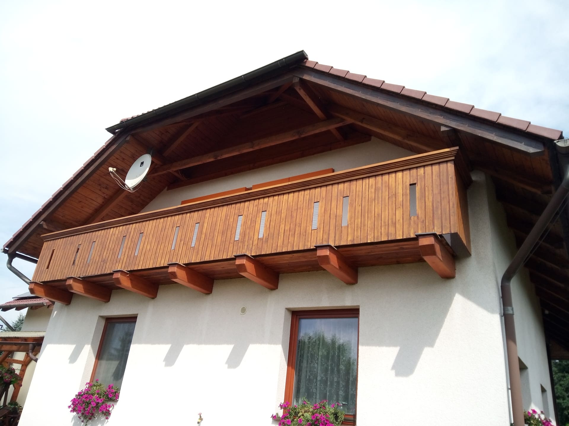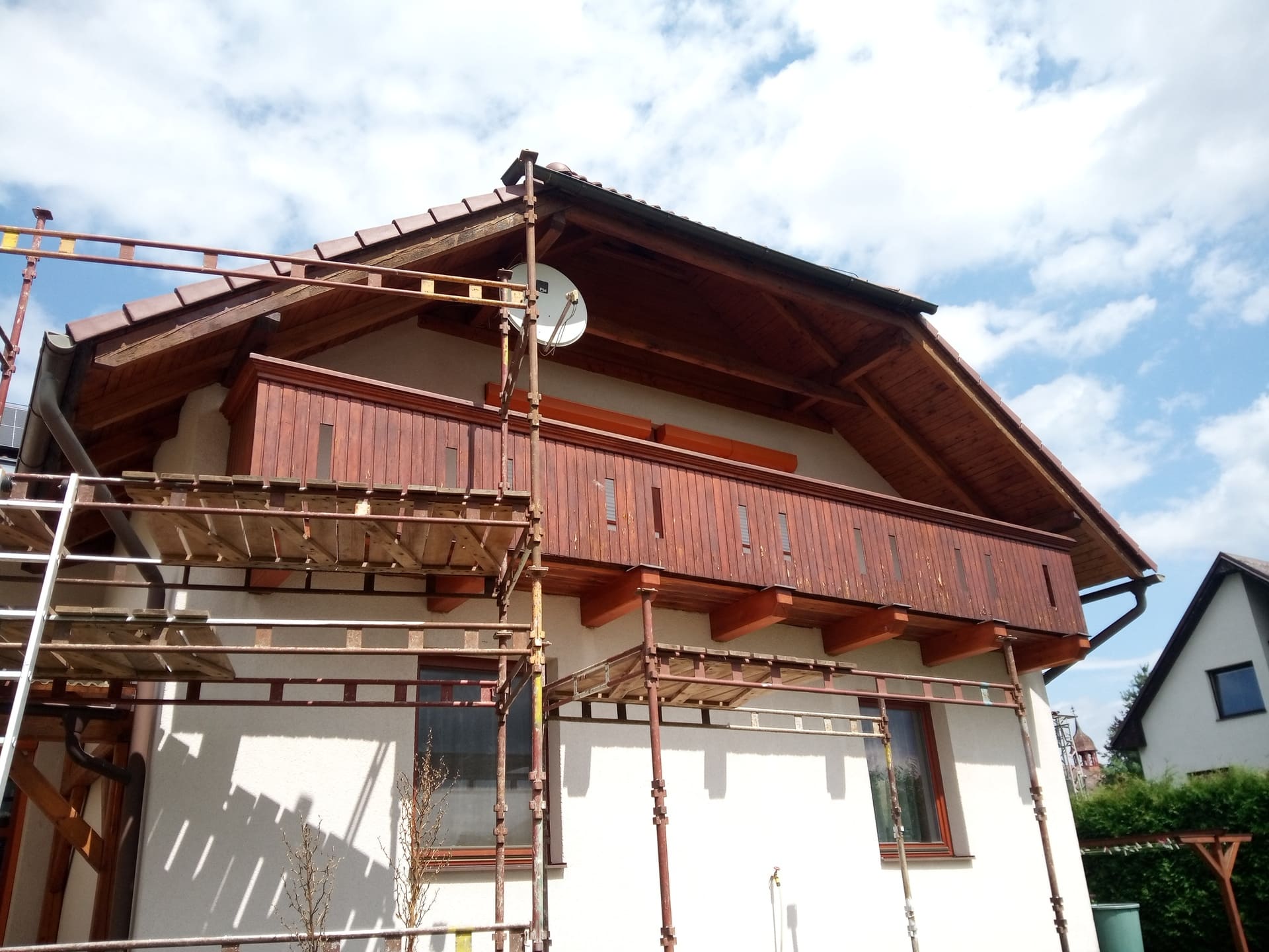 Očištění a nátěry venkovních krokví, kompletní obroušení dřevěného balkónu od původní loupající se barvy a provedení nových nátěrů