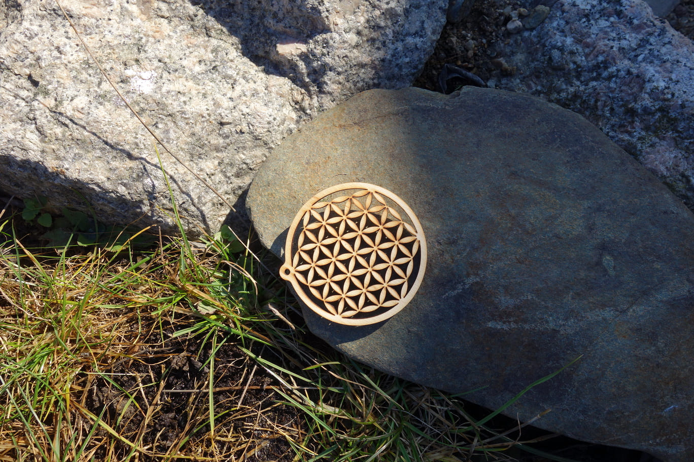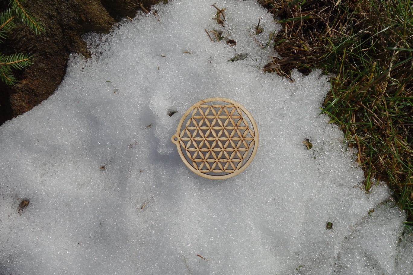 Květ života o průměru 8 cm. Květ života je prořezávaný.