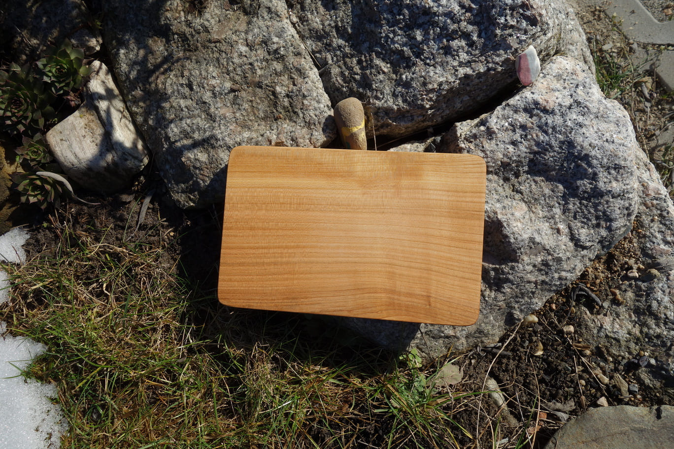 Prkénko má jemně vybroušené krájecí plochy a decentně sražené hrany. Příjemné do ruky.